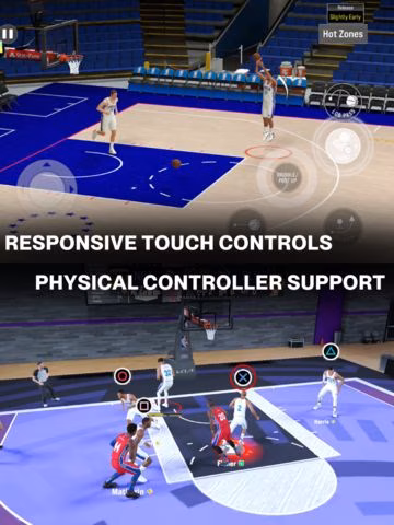 The gameplay mirrors the core NBA 2K24 basketball experience, providing the same gameplay feel to it from the motion captured animations and realistic physics engine to the intuitive controls and game mechanics. Touch controls are seamlessly adapted for mobile play, while still properly supporting physical controllers for gameplay (since touch is still used for menus).