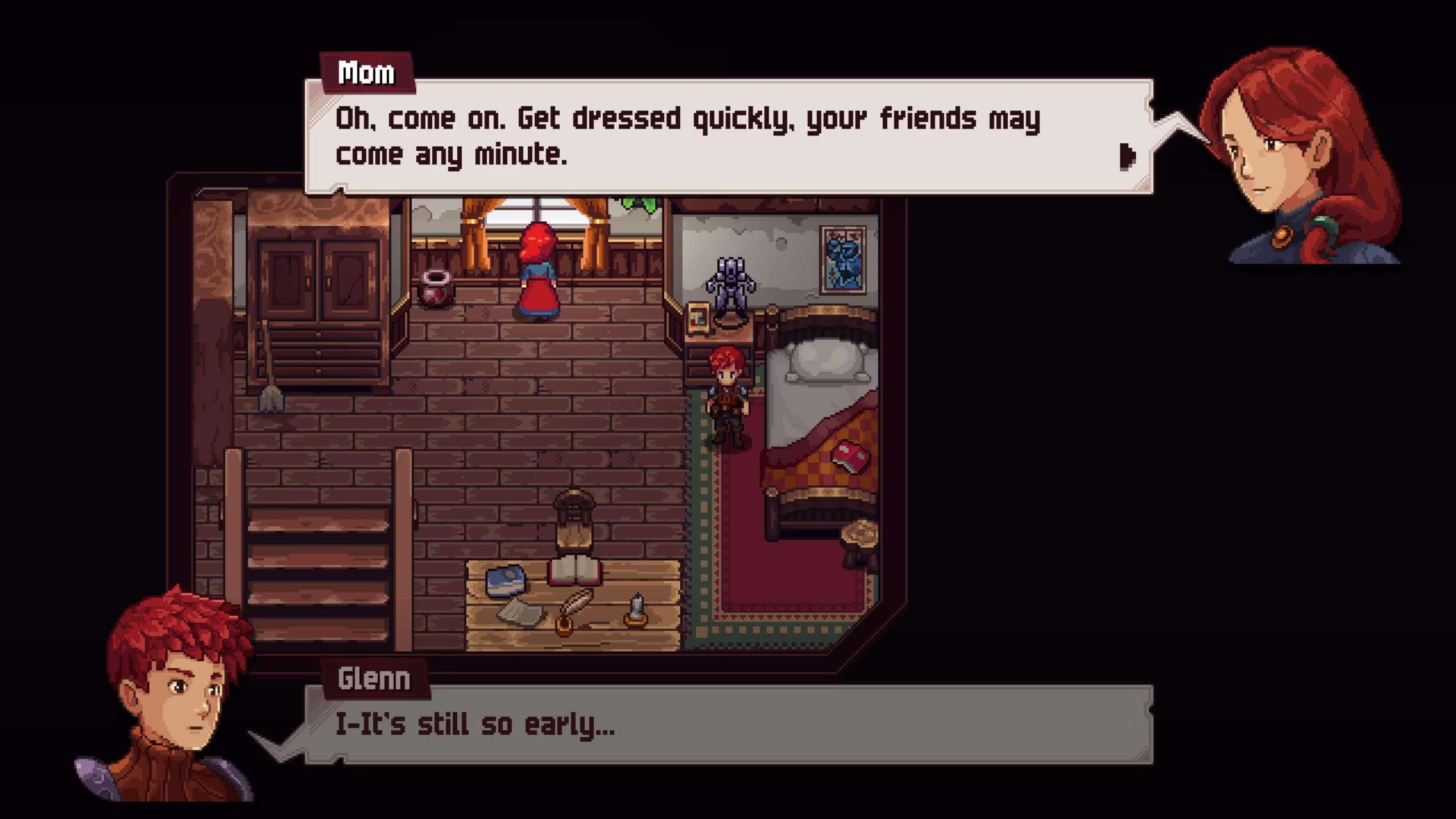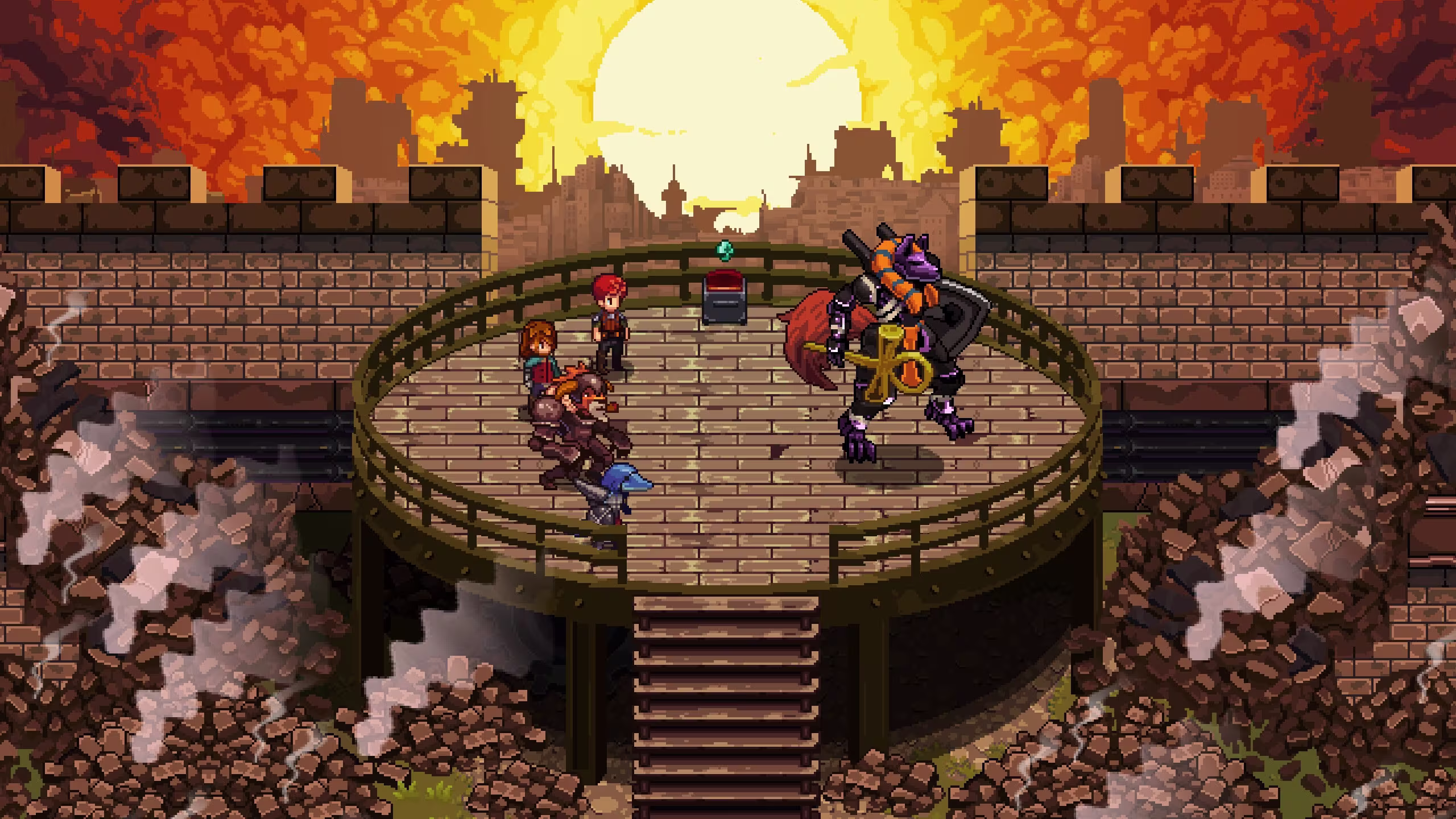 Chained Echoes is an indie game that will give you a sense of familiarity if you have a broad knowledge on various JRPG franchises, notable references include Chrono Trigger and Final Fantasy VI, to name a few. Some cut scenes are familiar to the player because of its references to older games, and it is known to break the fourth wall, especially when it comes to character banter.
